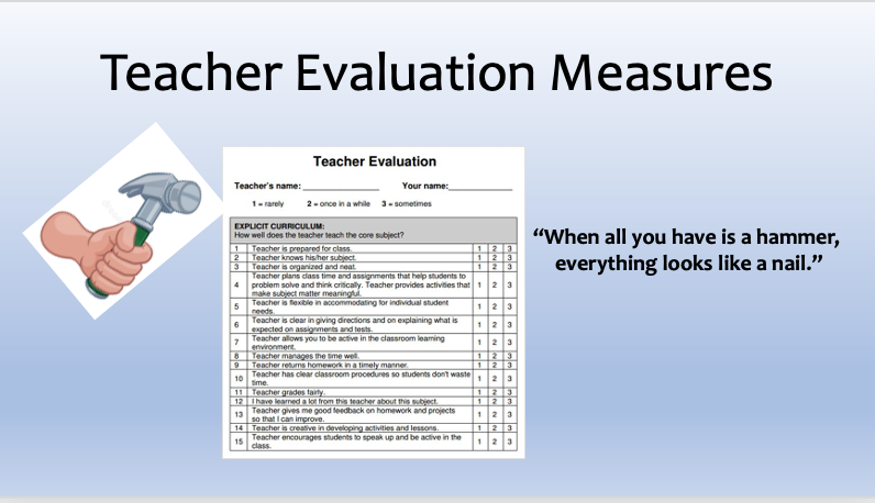To complicate matters, the trends in Teacher Evaluation are disjointed and unrealistic. They include the following: